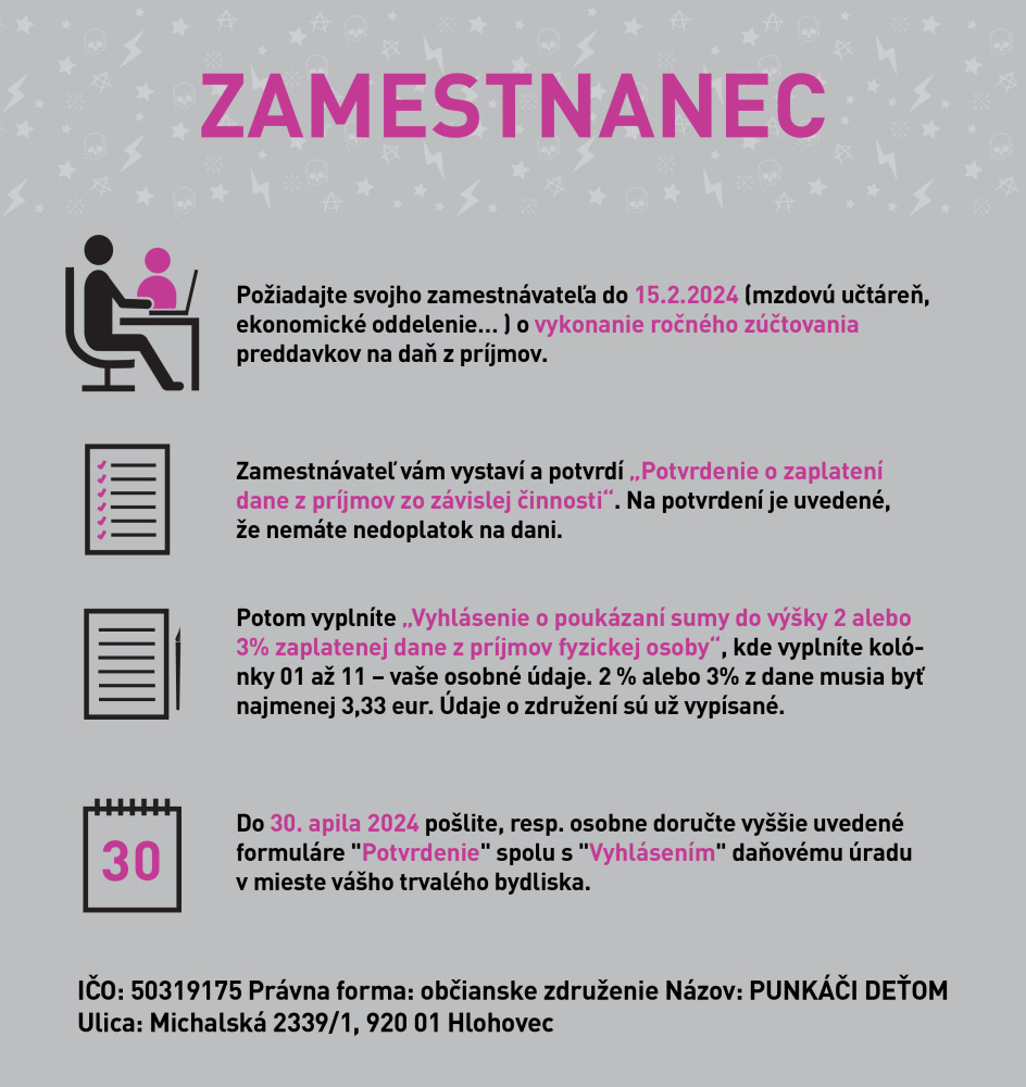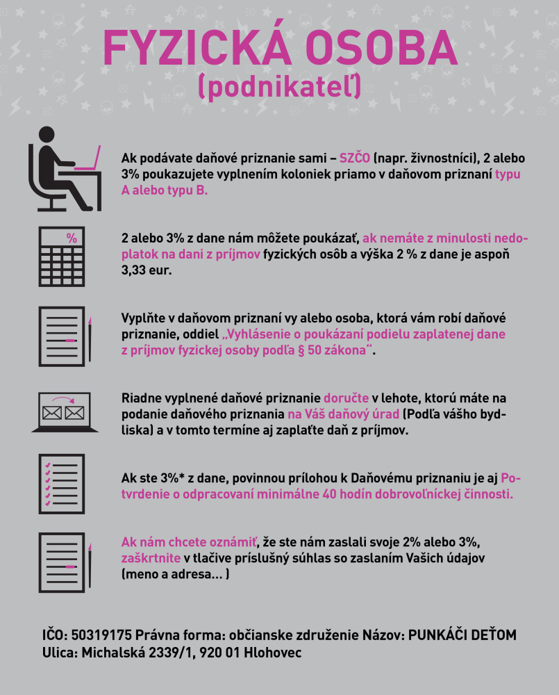 2% Z DANÍ PRE OBČIANSKE ZDRUŽENIE PUNKÁČI DEŤOM